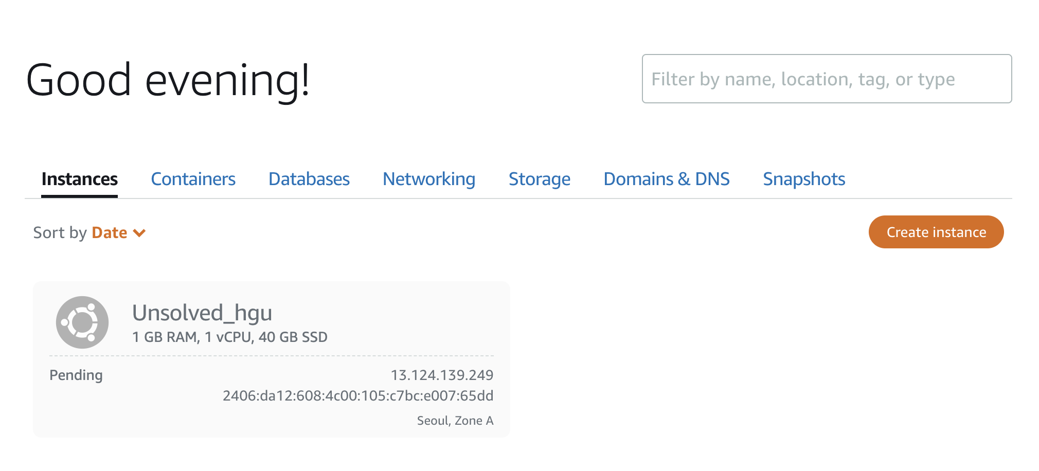 전에 언급했던 것처럼 AWS lightsailing으로 프로젝트를 생성하였다.