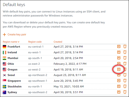 다운 받은 후에 로컬로 가기 전에 원하는 서버에서 쓰는 키페어가 무엇인지 확인하자