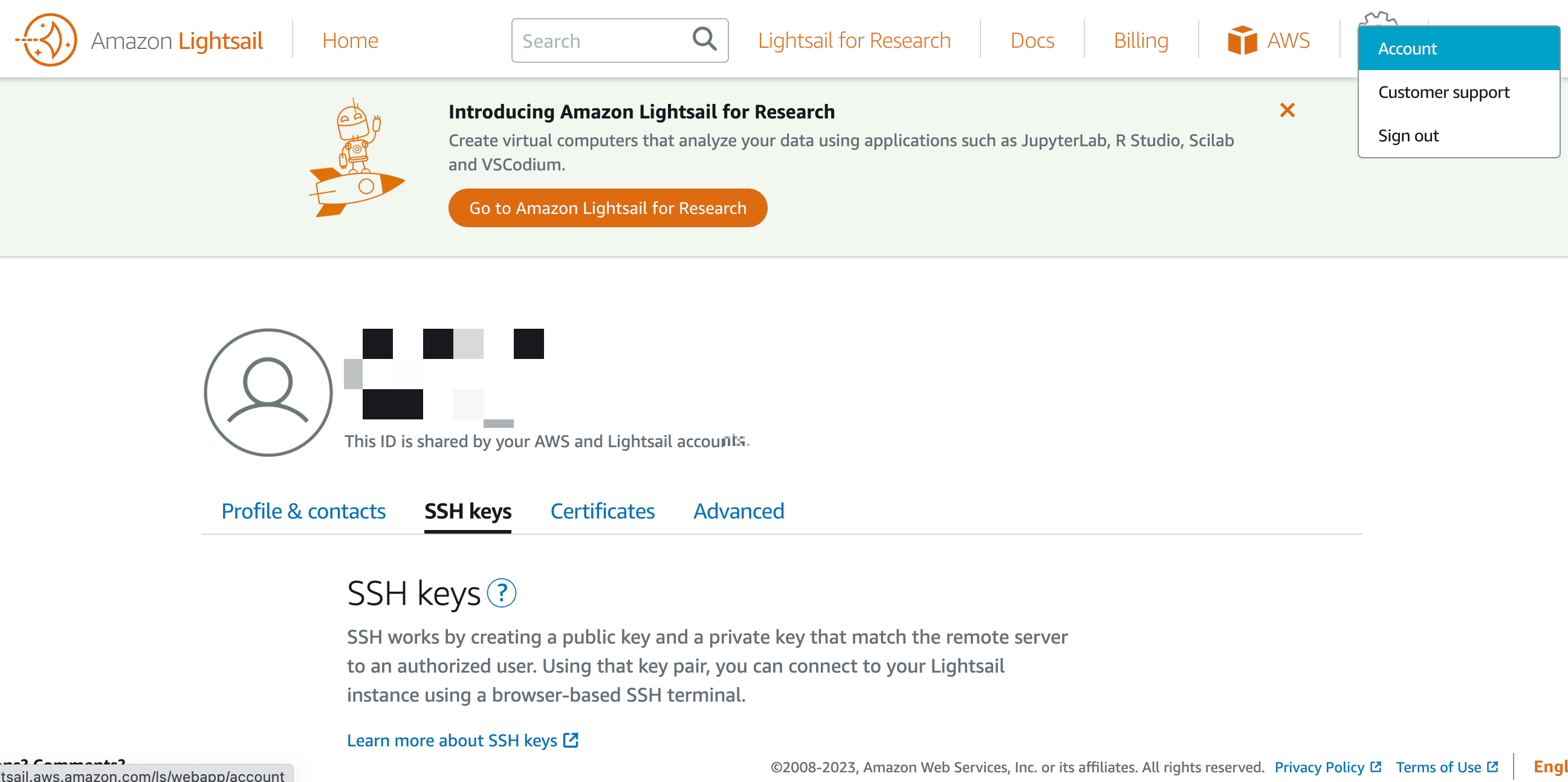 설정에 account를 들어가면 SSH keys가 있는 것을 볼 수 있다.