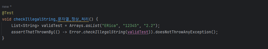 Exception처리를 하는 도중 Exception이 아닌 경우를 Testing하고자 하였다.
