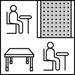 | 응시자가 앉아있는 자리(P)를 의미합니다. | 빈 테이블(O)을 의미합니다. | 파티션(X)을 의미합니다. |