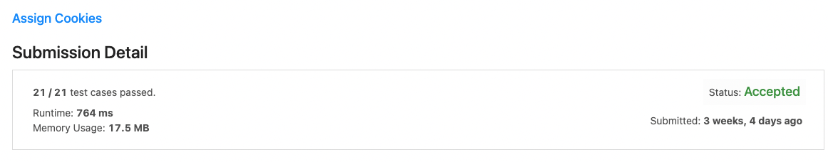 그리디 알고리즘을 적용해서 가장 작은 친구부터 가장 적은 쿠키수로 충족시켜나아가며 가능한 횟수를 최대한으로 계산하였습니다.