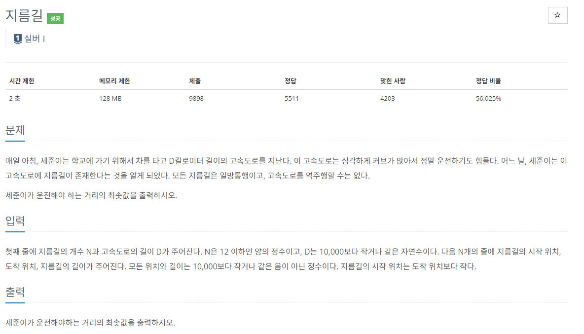 관련링크: https://www.acmicpc.net/problem/1446