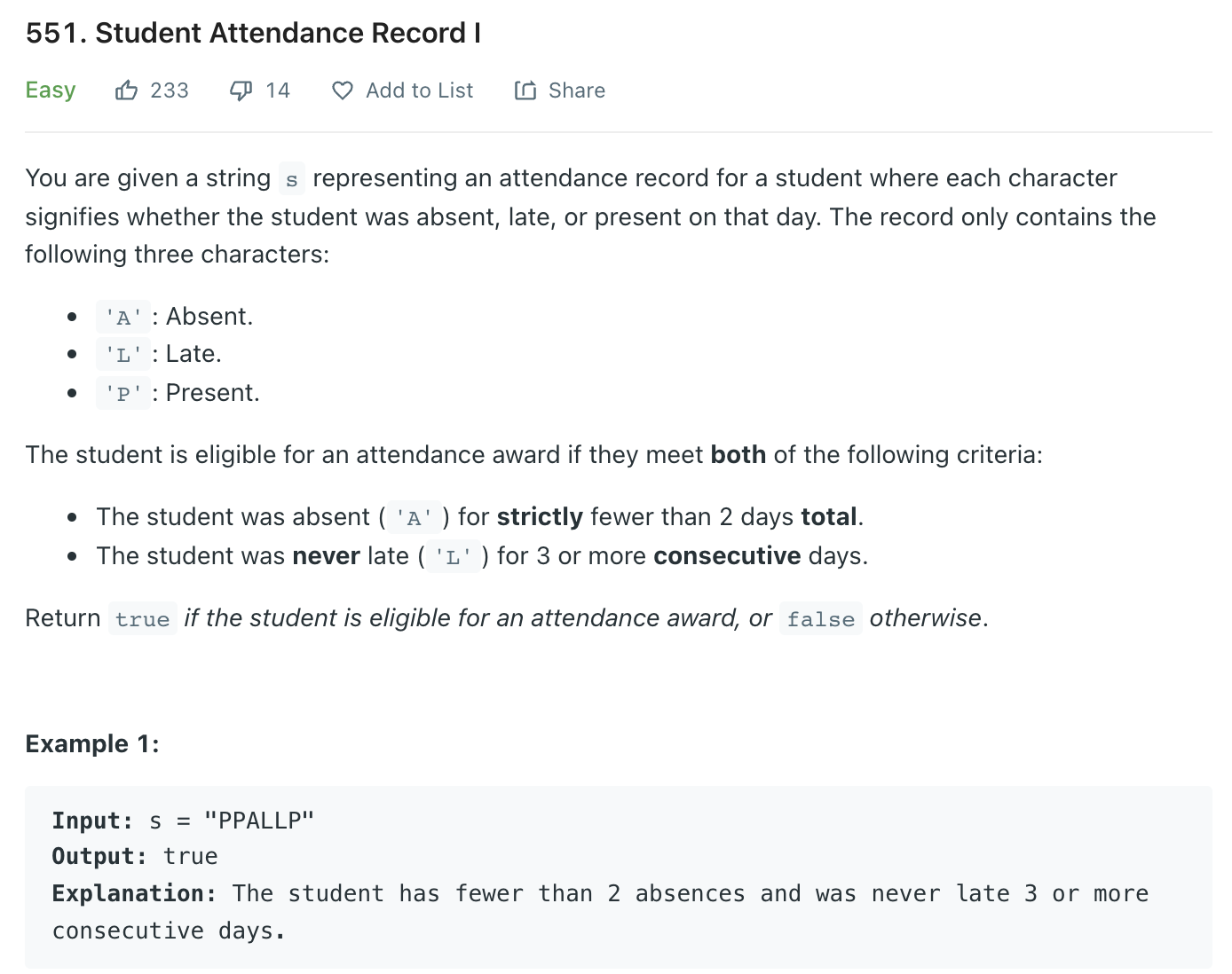 Student Attendance Record I - LeetCode