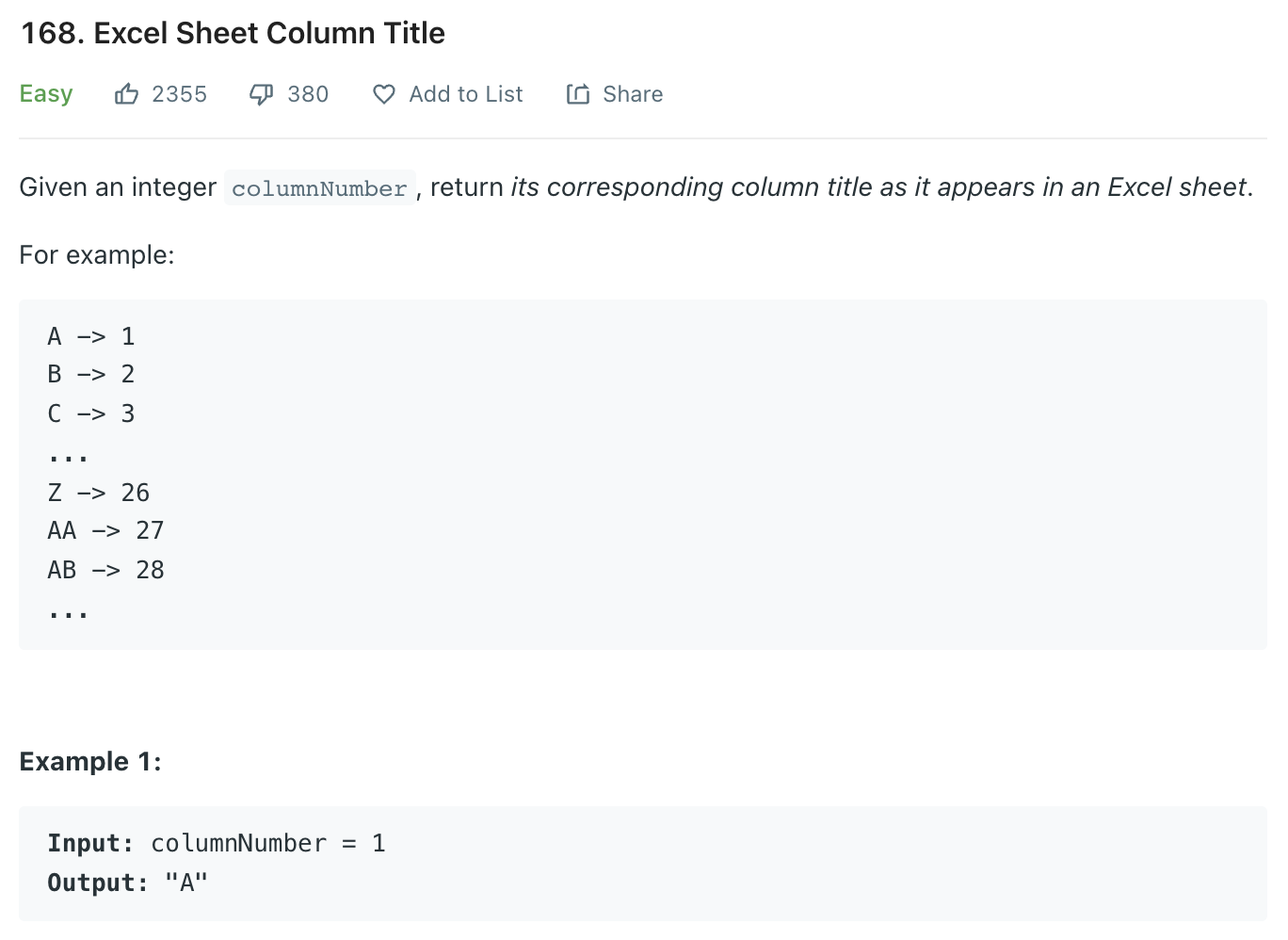 Excel Sheet Column Title - LeetCode