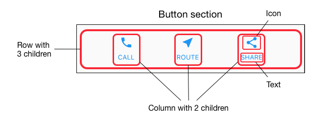 그리고 이렇게 구현한 Column을 함수처럼 사용하여 하나의 위젯에 3번 나타냅니다. 이후 위젯 이름을 buttonSection이라고 나타냅니다.